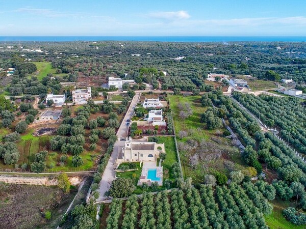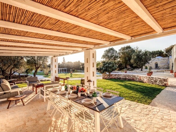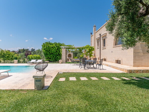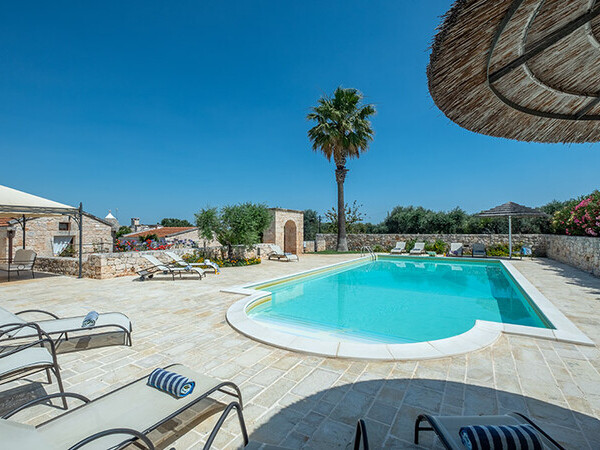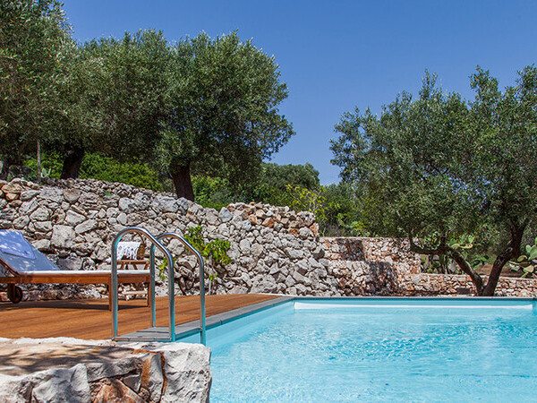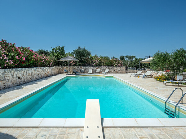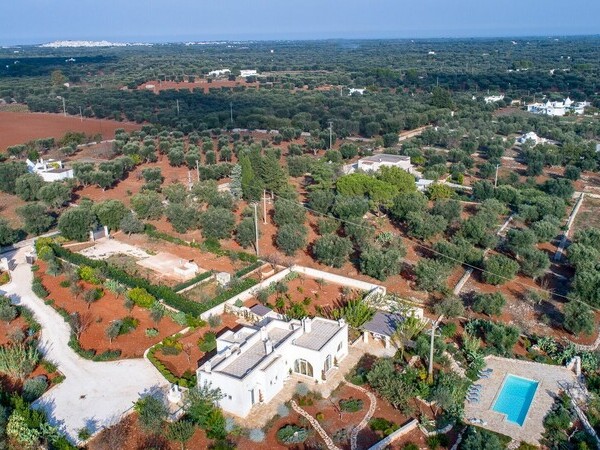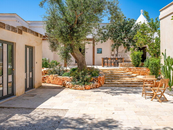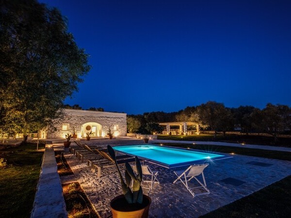 Masseria exclusive avec piscine privée et chauffée dans les Pouilles avec un mobilier de haute qualité. Idéalement situé à 4 km d'Ostuni et à 12 km de la mer.