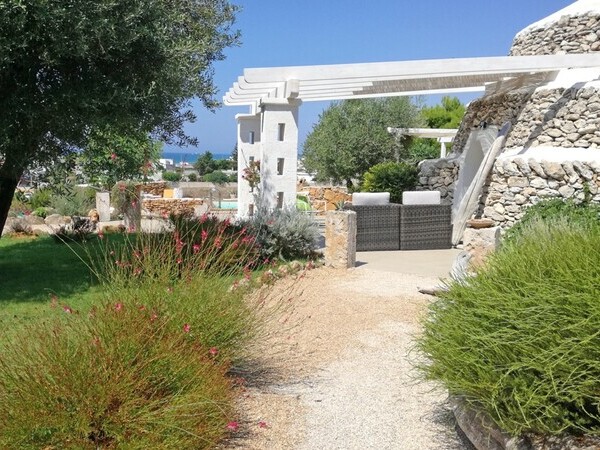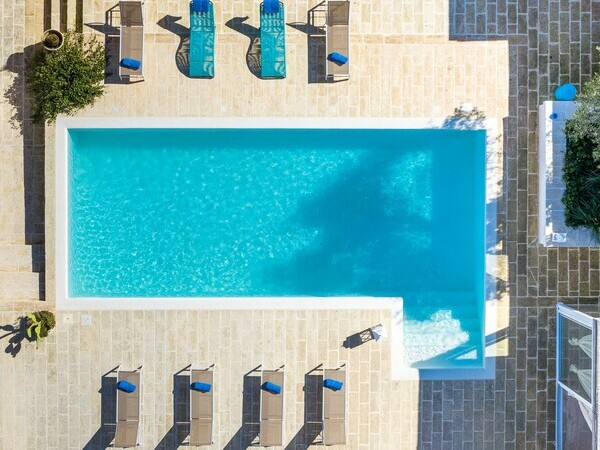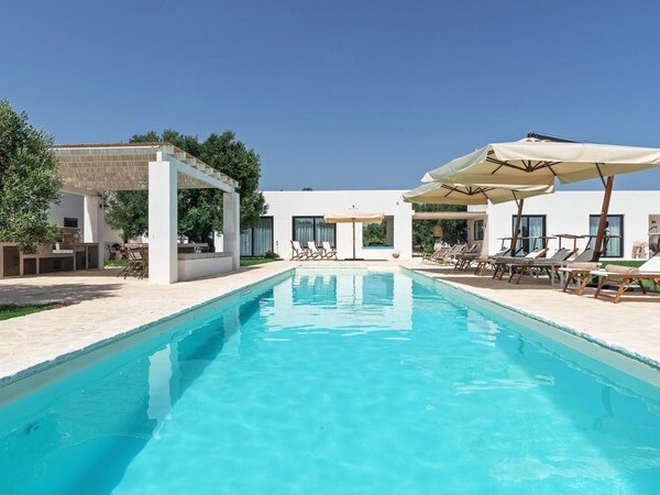 Séjournez à la Villa Gemapirò dans les Pouilles – une villa élégante avec piscine privée, hébergement pour 10 personnes, vastes espaces intérieurs et extérieurs, et vue imprenable.