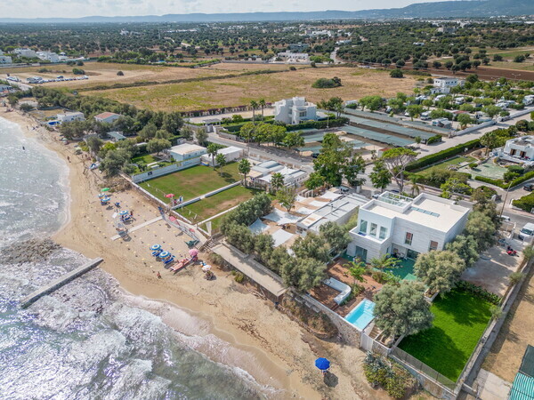Séjournez à la Villa Clementina à Monopoli, Pouilles – une maison de vacances moderne avec piscine privée, accès direct à la plage, vue sur la mer et intérieur raffiné pour jusqu’à 10 personnes.