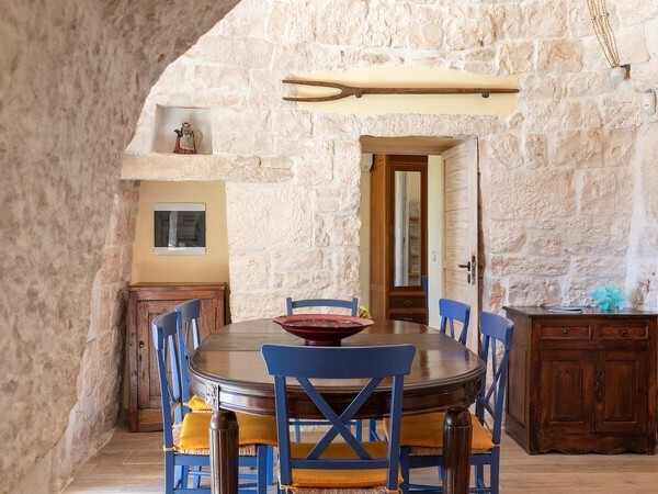 Lamia del Riccio, une maison en pierre traditionnelle des Pouilles. Profitez d'une cuisine extérieure, d'une piscine privée et d'un cadre naturel exceptionnel. Parfaite pour 6 personnes.