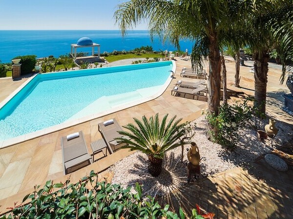 Villa Buenavista – villa élégante près de Taormina avec piscine à débordement (15 x 9 m), jacuzzi, jardin et vue panoramique sur la mer. Luxe, confort et intimité à proximité de Letojanni et d’Isola Bella.