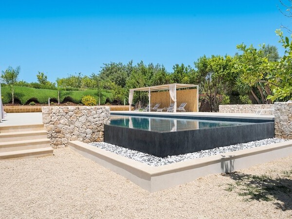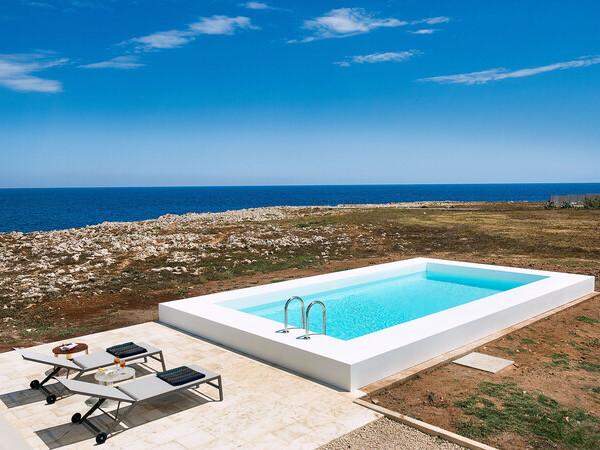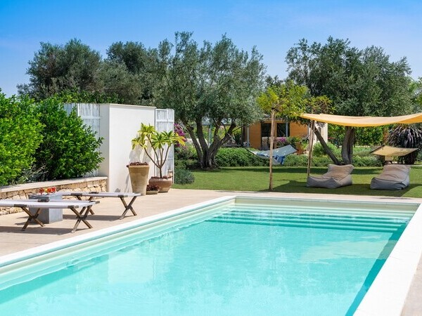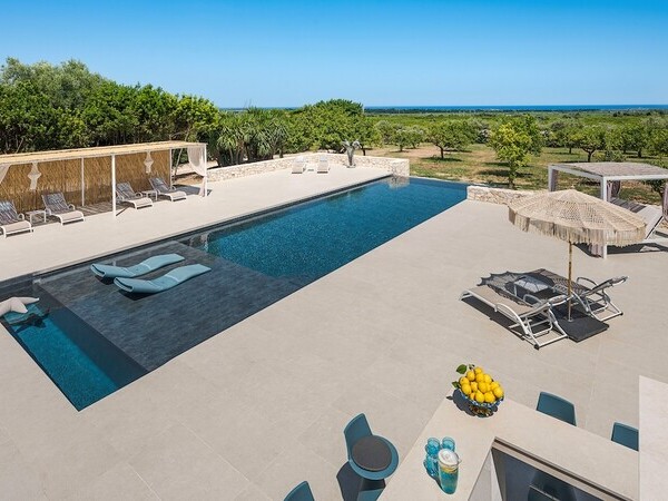 Villa Mira 57 dans les Pouilles – une villa de luxe avec piscine privée (15 x 4 m), jacuzzi, 5 chambres et de vastes espaces extérieurs près d’Ostuni et Carovigno.
