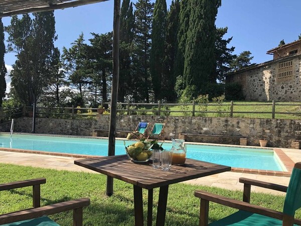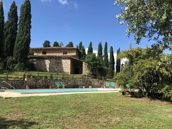 Profitez d'un séjour relaxant à La Vigne, une villa avec piscine et jardin clôturé, idéale pour découvrir la Toscane en famille.