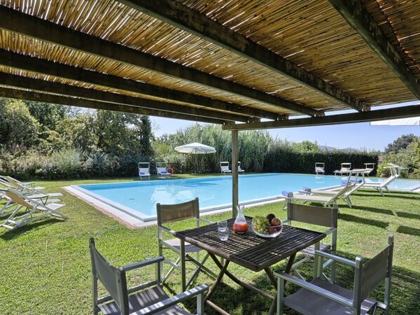 Exklusive Villa mit privatem Pool in Lucca Villa mit Nebengebäude in der Villa Angeloni in Lucca Aussenessplatz im Grünen in der Ferienvilla Angeloni in der Toskana