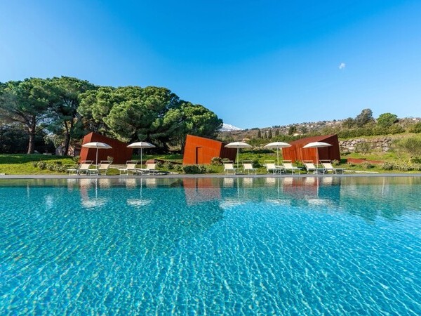 Séjournez à la Tenuta della Contea, villa de luxe entre Taormine et Catane, avec piscine à débordement et confort moderne, parfait pour la détente.