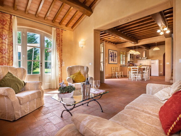 Découvrez La Sorgente, une villa toscane nichée parmi les oliviers, parfaite pour des vacances familiales ou entre amis avec cuisine équipée, piscine d'eau salée et terrasses panoramiques.