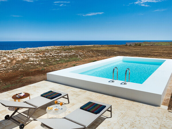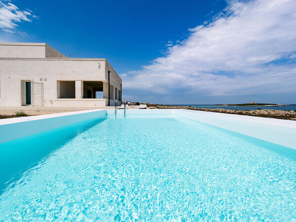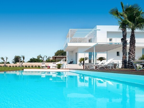 Séjournez à la Villa Clementina à Monopoli, Pouilles – une maison de vacances moderne avec piscine privée, accès direct à la plage, vue sur la mer et intérieur raffiné pour jusqu’à 10 personnes.