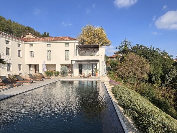 Superbe villa à Gabiano, Piémont : piscine privée, bain finlandais, design haut de gamme & dégustations de vin. Pour des vacances élégantes et reposantes.