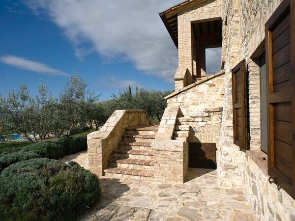 Découvrez la Villa Santa Croce avec piscine chauffée, intérieur élégant et vue panoramique à 360°. Près du golf d'Antognolla, idéale pour la détente et la tranquillité.