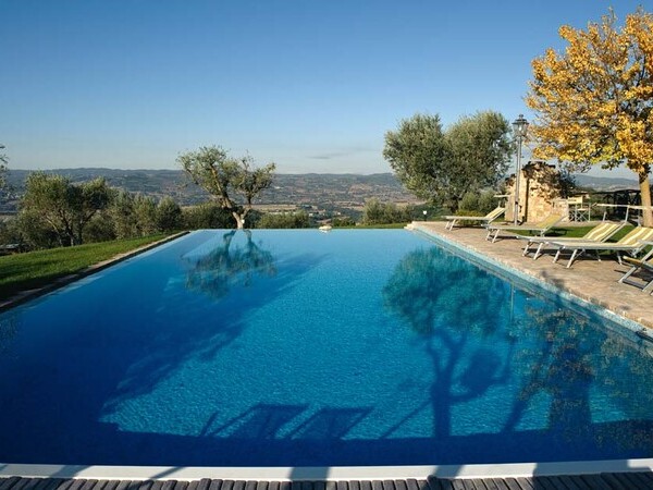 Séjournez dans notre maison de vacances de luxe en Ombrie. Profitez d'un design élégant, d'une piscine privée à débordement et de la proximité de la culture locale.