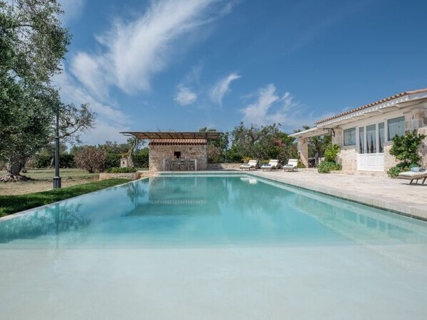 Découvrez Il Frantoio, une villa exclusive dans les Pouilles, à seulement 3 km de la mer. Piscine chauffée, jardin clos et climatisation – idéale pour des vacances relaxantes.